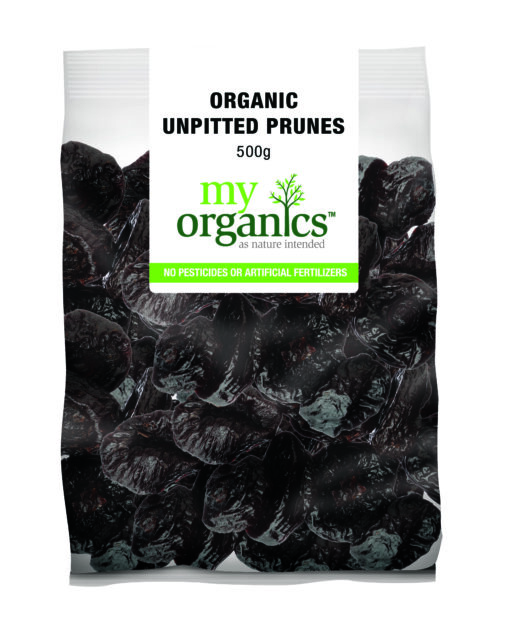 Australian grown Certified Organic unpitted prunes. High in fibre, low in fat. No preservatives. No additives.