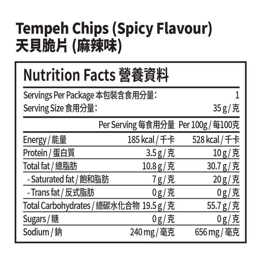 These crispy tempeh chips are loaded with protein, calcium, and fibre, carefully cooked in premium coconut oil for the ultimate crunch. Free from the Five Pungent Roots, they’re crafted to suit a variety of dietary needs. With only 185 calories per pack, you can enjoy a snack that’s both healthy and delicious! Treat yourself to a guilt-free indulgence.