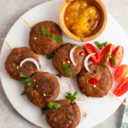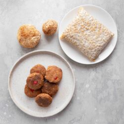 Ingredients: Chana dal tempeh*, lion’s mane mushroom, onion, arrowroot flour*, bean curd sheet, cauliflower, ginger, olive oil, vegetable oil, rice mirin*, fresh red chilli, fresh coriander leaves, Baharat spice mix (paprika powder*, cumin powder*, black pepper*, coriander powder*, nutmeg powder*, cinnamon powder*, clove powder*, cardamom powder*, star anise powder*), pink salt*.